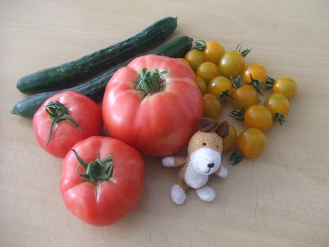 桃太郎3玉をいっぺんに収穫。イエローオーレもたくさん出来ました。ついでにキュウリも母親の畑から失敬。冷やして頂きました。自家製新鮮野菜はなぜか甘いです。しばらく収穫が続きます!←ポチッと!ランキング参加中