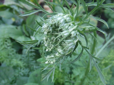 五寸人参の花が開きました。やっぱり色は白でした!(←今まで知らなかった私・・)他の株はちゃんと根を太らせているのですが、この1株だけ、なぜか色気づき(?)生殖器官形成を発動しているのでした。お茶目なやつです。←ポチッと!ランキング参加中