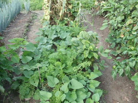 鳴門金時がほぼ畑を占領しました。エダマメを刈り取ったとたんにあっという間に広がりました。合間にニンジンが埋もれています。奥に見えるのがミニメロンです。ちなみに右と左は母親の畝で茄子とピーマン、ネギでございます。←ポチッと!ランキング参加中