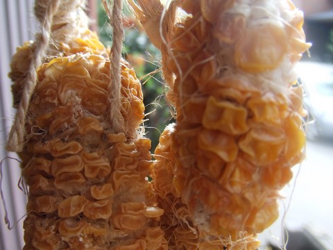 無謀にもタネをとってみようと思っています。トウモロコシを干しております。初めての挑戦なのでうまくいきますかどうか・・。一応、本も読んでみました。とりあえず1~2週間乾かしてみます。とはいえF1のタネ(品種は味来:つまり雑種!)ですから、今度はF2になるので、中学校で習ったメンデルの法則みたいにバラバラの形質が発現することでしょう!!ま、それも楽しもうかと思います。もちろんちゃんと発芽すればの話ですが!←ポチッと!ランキング参加中