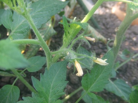挿し芽のトマト苗です。イエローオーレです。いつの間にか花が咲いていたようです。といってもごらんの通りで小さいですが・・。5株挿し芽をして根が出たので、ちょっと広いところに植えかえてみました。←ポチッと!ランキング参加中