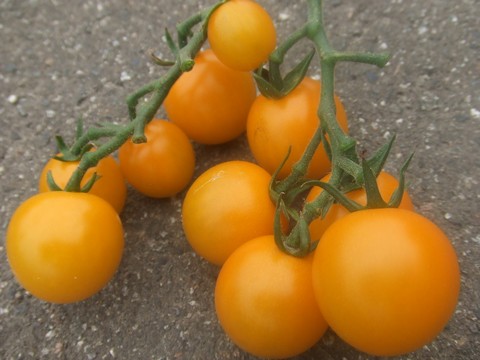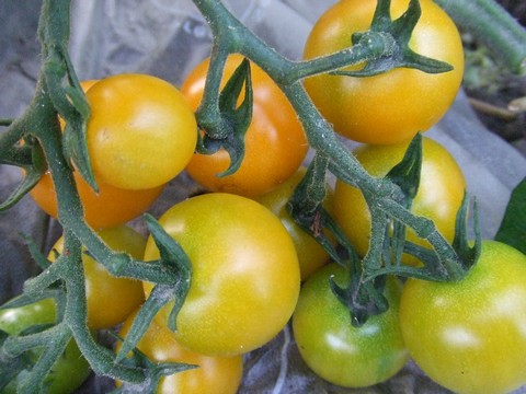 収穫しました。イエローオーレです。4つほど畑でつまんで食べてしまったのですが、もともとは1房に14個でした。子だくさんです。中玉ということでしたが大きくなりませんでした。味はフルーツトマト系、酸味が少なくてスッキリした甘みがあります。たくさん実がなっていますので、今後収穫は続きます!楽しみ楽しみ。←ポチッと!ランキング参加中