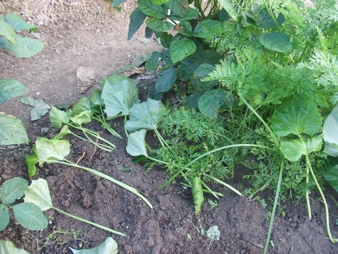 鳴門金時です。ジャングルになって畝を覆っています。まだ人参が植えてあるのですが、埋もれてしまいました・・・。早めだけどそろそろ人参の収穫をしちゃいます。←ポチッと!ランキング参加中