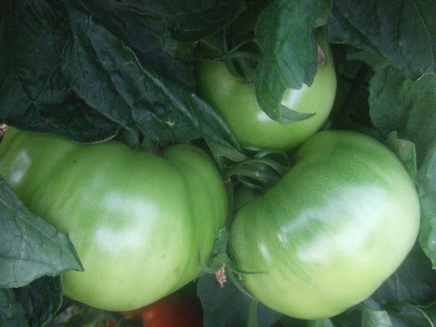 エラく肥大しております。リンゴぐらいの大きさ?桃太郎トマトです。手抜きでほとんど無肥料状態なのですが大きくなりました。最初は永田農法を意識して、住友液肥を1週間おきだったのですが、最近は元気そうなので手を抜いていました。おそらくもともとの土に肥料分があったみたいです。去年までここは穴を掘って枯れた作物の茎や雑草を放り込んでいたようです。それが良かったのかな?←ポチッと!ランキング参加中