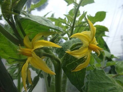 生き残った方の桃太郎トマトがすくすく育ち、5段目の花をつけました。永田農法の本によると5段目まで収穫できれば素人としては上出来だそうです。今、3段目まで実が育っています。がんばれがんばれ。←ポチッと!ランキング参加中