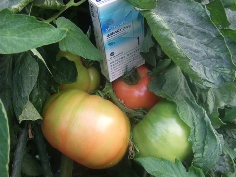 桃太郎がやたらでかくなってきています。LLサイズを通り越して3Lサイズです。ほとんど追肥してないんだけどなぁ。タバコの箱が小さく見えます。ここで問題指摘。タバコってモザイクウィルス病の原因にもなるとか、ならないとか。でも私は畑でぷかぷかやっております。もちろん吸い殻は携帯灰皿ですよ。←ポチッと!ランキング参加中