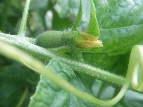 小玉のメロンです。やっと雌花がつき始めました。枝豆の横で茂っております。母のキュウリや庭のゴーヤなどウリ科の花付きが例年より悪い感じがします。窒素肥料過剰ではなくて今年の気候のせいだと思うのですが・・・。実って収穫はもうちょっと先ですね。←ポチッと!ランキング参加中
