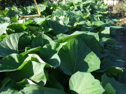 鳴門金時が元気です。すごい勢いで葉を茂らせています。元々は天ぷらのあまりのシッポだったのに。枝豆の跡地を完全に、あっという間に占領しました。とはいえ植え付けが遅かったのでちゃんと芋が出来るかどうか・・。この暑さで盛り返してくれればいいですが・・。さあ、秋を楽しみにしようっと。←ポチッと!ランキング参加中
