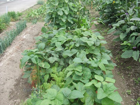私の畝の枝豆は種取り用1本を残し、サツマイモに明け渡したのですが,母の畝では今がエダマメの盛りです。私が植えてあげたのですが、貧乏性で密殖しすぎです!!そろそろご相伴にあずかる予定ですσ(^^)。←ポチッと!ランキング参加中