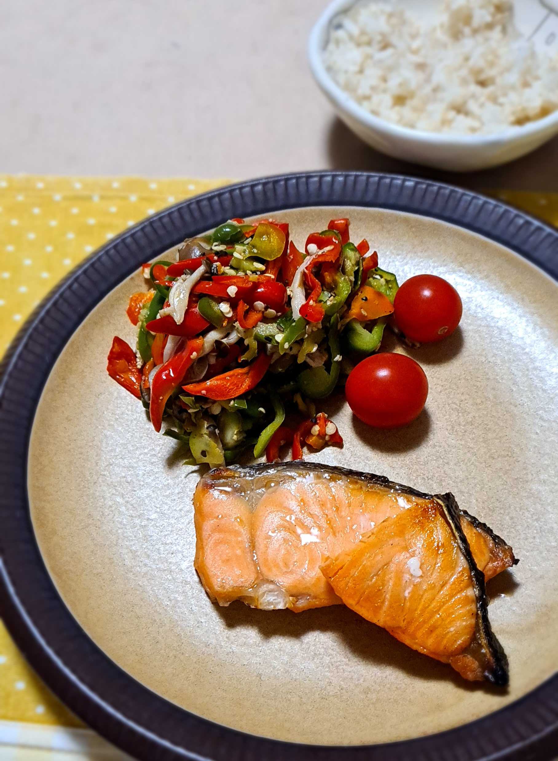 今日の味噌汁はわかめと豆苗の味噌汁…
