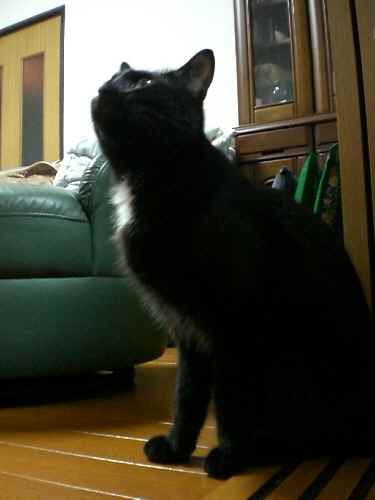 視線の先には大好きな「ミャウミャウ(カリカリ)」が隠されています。