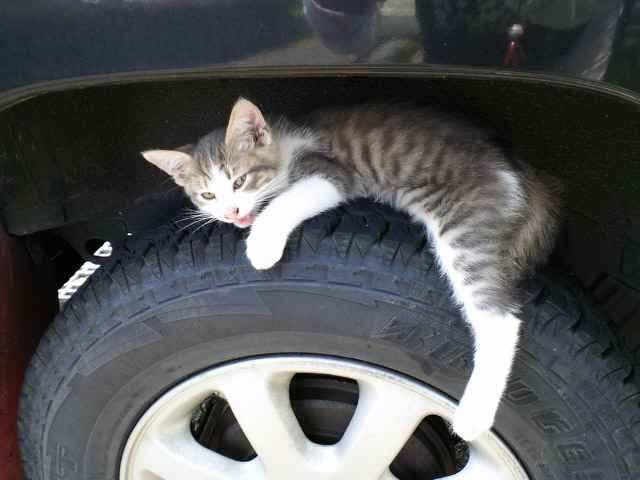 写真のようにタイヤの上で寝ていたようです。