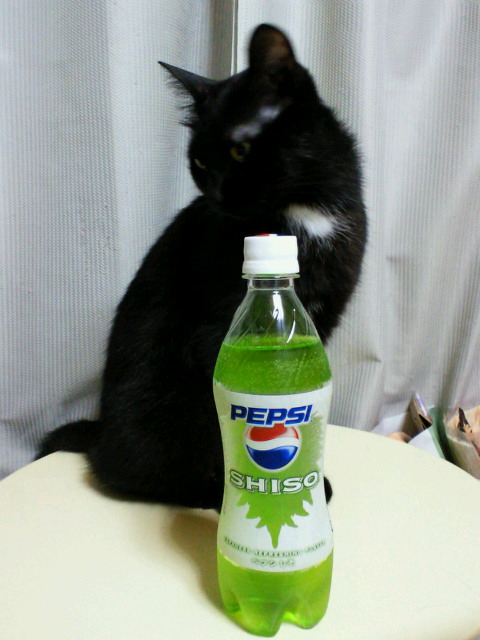 ペプシのメール会員なのでずいぶん前から「しそ味」については情報を得ていたのですが、ついに現物をゲットしましたので、副会長の相方宅へ急行しました。