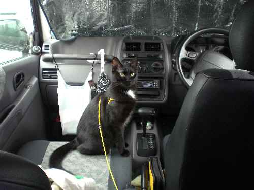運転席で寝ていたり、ぽるズシートで外を眺めていたりしているようですが、今日は落ち着かない様子。