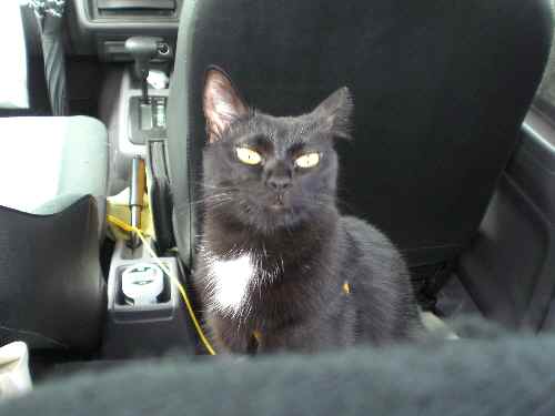 荷物を積もうとバックハッチを開けると、寝ていた運転席から後部座席へ移動してきました。