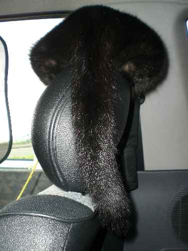 運転席のヘッドレストに乗って、窓の隙間から出れないものか真剣です。