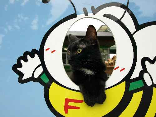 ※写真は旅ぽる・朝倉街道編の藤井養蜂場での顔ハメ写真のアップです。