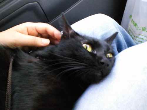 写真は助手席の相方のヒザでいつものようにくつろいでいるところ。