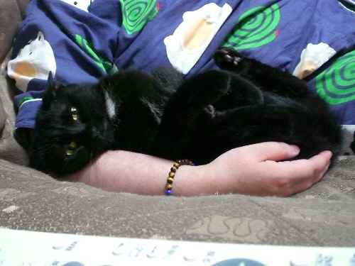 クロの場合、手を頭の上に持ってくると必ず最初はビクッとして目を閉じますが、ぽるはしばらくすると完全に忘れてしまうようで、頭に手をやってもえっくるえっくるノドを鳴らすだけ。