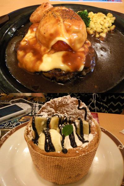 えー写真はガストの「丸ごとトマトをチーズでくるんだハンバーグ」(税込¥691)と「まるごとチョコバナナシフォン たっぷりカスタード&生クリーム」(税込¥576)です。