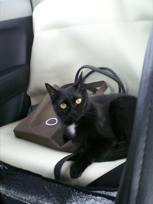 写真は後部座席で昼寝中のぽる。