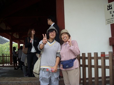 応援して!クリックするだけで募金できます。一日一回クリック募金。 乱拍子でユウキ君の相棒の小春ちゃんが高校の修学旅行で関西へやってきました。今日は関空から法隆寺、奈良公園のコースでしたがあいにくの雨で一寸残念でした。爺(⌒o⌒)婆 ちゃんとは東大寺の大仏殿で久しぶりにご対面しました。宿舎が京都のホテルということで30分ほどでお別れしましたが、実は数日後には爺(⌒o⌒)婆 ちゃんが札幌へ行きますのですぐに会えるんですわ。婆っちゃんとご対面小春とお友達久しぶりの大仏殿です雨でしたが修学旅行生で満員仁王さん