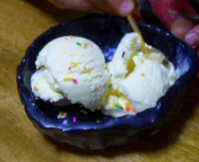 応援して!クリックするだけで募金できます。一日一回クリック募金。 この夏は猛暑に見舞われて晴ぼんはもっぱらアイスとカルピスが手放せませんでしたチョッピリ秋の気配が出てきましたが相変わらずデザートはアイスです。婆っちゃんが買っておいた2リットルのアイスカップから爺っちゃんがサーバーで入れるのが定番になっています。器は以前自分で作って焼いてもらったお鉢で美味しそうにせっせと食べています。まあ、間食はしませんので安上がりで何よりです・