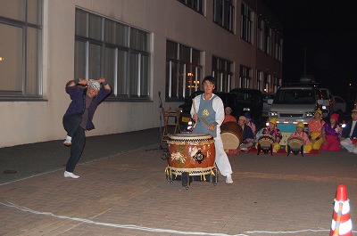 応援して!クリックするだけで募金できます。一日一回クリック募金。 ユウキ君たちの乱拍子は毎年長沼町の夕焼け市の最終日に呼んでいただき路上ライブをさせていただいています。今年も公演に参加しましたが例年になく寒くてお客さんも少なめでしたが、皆さんには喜んでいただけたようです。乱拍子の保護者の方も大勢応援に来ていただきました。公演の様子は以下の画像で紹介します。第1、2のステージは寄席太鼓でスタートしました。寄席太鼓はお客さんも参加します。八丈太鼓・勇吉はこどもたちの太鼓です。ユウキ君の勇吉です。団員の応援団・・オニイチャンがんばれ・・・・。獅子舞の出囃子はおかめとヒョットコから・・・。ユウキ君のヒョットコと小春のおかめです。獅子舞のスタートは「いやさかさっさ」です。壮大な三連の北海白獅子の舞です・・・。お囃子連は交代で全員で参加します。第三ステージは寅舞です・・・。頭はユウキ君、胴は踊君が入ってます・・・。寅とチョウチョの絡みです・・・・。武者と寅の戦い場面は迫力満点・・・。さて、どちらが勝つのかな・・・・・。寅舞のファイナルは全員で舞います・・・。1ステージ40分の3ステージでした。3カ所に移動しての公演ですので、舞台道具の移動が忙しかったです。終了後は応援団も参加して全員長沼温泉で汗を流して交歓しました。お疲れ様でした・・・・(。_・)ドテッ・・・・。