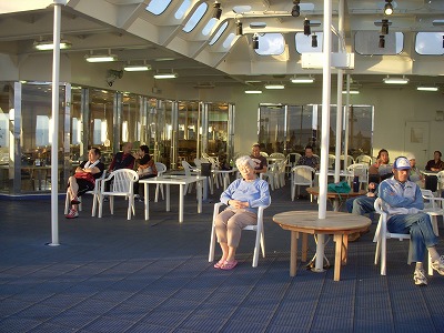 応援して!クリックするだけで募金できます。一日一回クリック募金。 深夜の二時前に舞鶴を出航しました。乗用車は満車、トラックの積み込みが遅れて三十分ほど遅れたようですが、入浴してすぐに就寝しました。朝の八時頃に起床、好天の日本海で佐渡島近くを公開中でした。終日ポケーと海を眺めながら過ごしました。今回の新日本海フェリーは十月初めから小樽市の協賛で小樽航路の乗用車の乗船に限り、四千円の船内お買い物券と小樽の物産プレゼントのキャンペーン中でした。二千万円に達したらおしまいということでしたが無事に圏内でしたので有り難く頂戴しました。この乗船中のみの期限ということで賞味期限の長い北海道のおみやげをたっぷり購入しました。関西へ帰ったら配る予定です。夕方からは日本海に沈む見事な夕陽を堪能しました。すばらしい眺めで大勢の方が甲板へ出て眺めていましたね。?\(。・_・。)/?わーいっ?船は定刻の九時頃に無事小樽港に接岸、札幌のユウキ君ちへ無事到着しました。婆っちゃん休養中です。フェリーのすれ違い落日