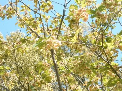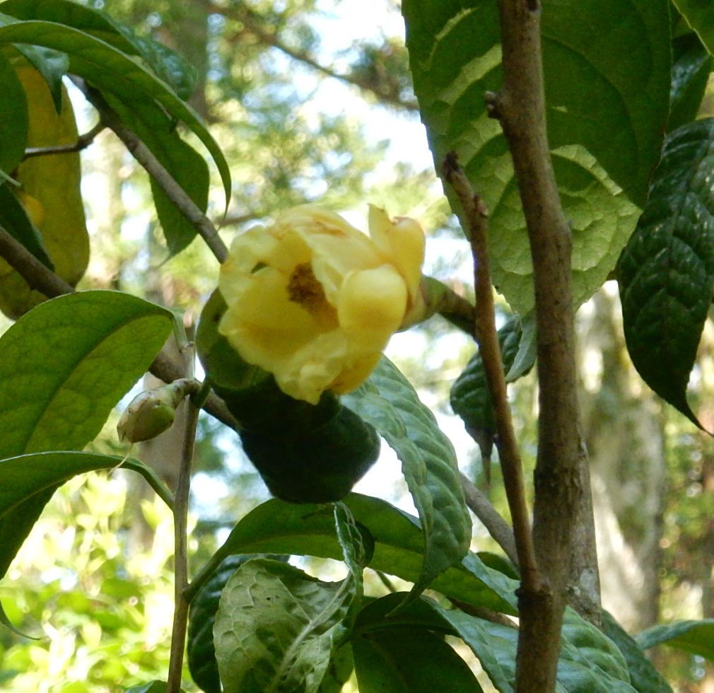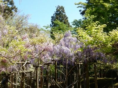 今日は藤以外にも、緑の桜「御衣黄 ギョイコウ」は三本とも満開で、黄色い椿「もうずきんかちゃ」の咲き残りも見られました。