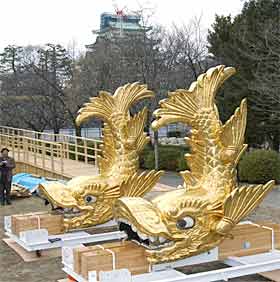 今日はせっかくのお休みだと言うのに、外は大雨です・・_| ̄|○ ガクーリこんな日は気分も晴れませんなぁ~~ところで、いよいよ今週末の25日から 「愛・地球博」 (愛知万博)が開幕しますね♪連休で内覧会があったみたいですが、3日間で11万人が訪れたとか・・・ちょっとしたトラブルなどもあったみたいですが大丈夫でしょうか??開催期間は9月25日までの185日間と言う事で一応、愛知県人のσ(゚Д゚*)としては1回は行っておこうかと思ってますが!?そんな万博の開催も目前ですが、今名古屋のシンボル!?である「金 の シ ャ チ ホ コ」が地上に降臨しております。なんでも、天守閣から降ろされるのは21年振りだとか!?これは万博に合わせて行われる 「名古屋城博」の為ですが。24日の万博の開会式に登場らしく、23日から市内を回ったあと会場入りと聞いてます。そして今回の名古屋城博はシャチホコが見れるだけじゃなくな・なんと「直接手で触れますからぁぁ~」これは400年の歴史上、初めての事らしいです(・∀・)チゴイネなんだかとっても行って見たくなりましたよコレ!!まぁ、めったに無い機会なんで 「行って、触って」 来るのもいいかもしれないですな♪こちらは6月19日まで開催されてるらしいので、興味のある方はぜひドーゾ!!