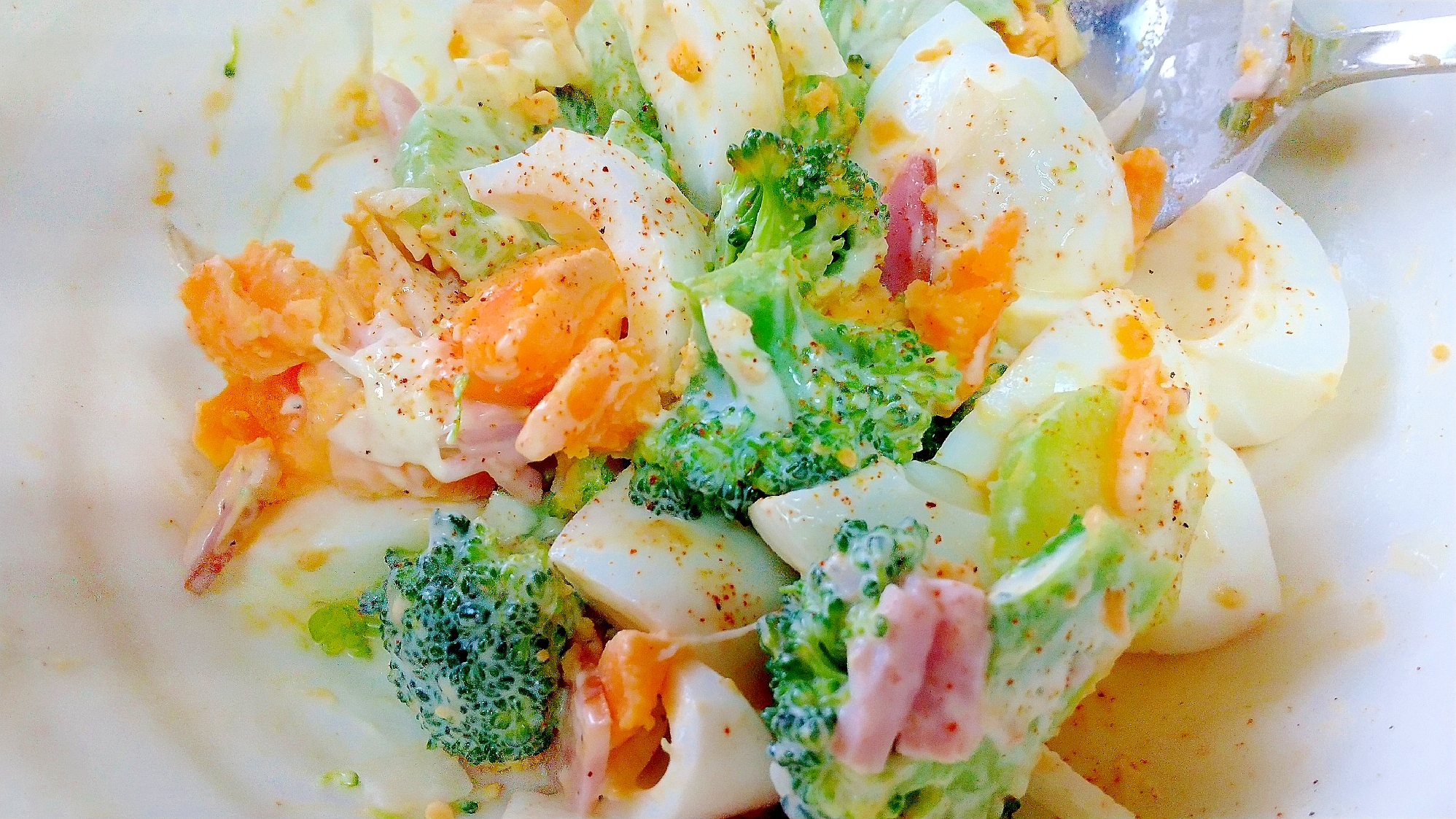 ブロッコリーと茹で卵のデリ風サラダ♪料理名:ブロッコリーと茹で卵のデリ風サラダ♪作者: ponta634■材料(4~5人分)茹で卵 / 3個茹でたブロッコリー / 1株ロースハム / 2枚新玉ねぎ / 1/8個くらい★プレーンヨーグルト / 大さじ1★マヨネーズ / 大さじ2★シーザードレッシング / 大さじ1コショウ / 少々サラダエレガンス / 少々■レシピを考えた人のコメント家族に好評だったブロッコリーのサラダです。決め手はプレーンヨーグルトとサラダエレガンスです。詳細を楽天レシピで見る→