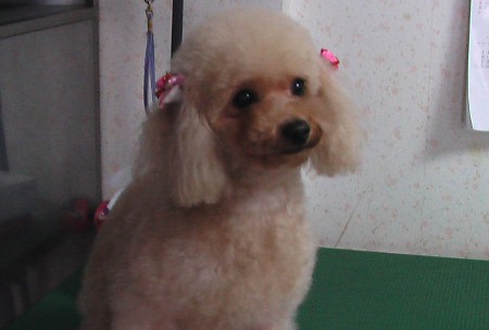 この頃になるとトイプーらしくなり可愛い女の子に見えてきましたエヴァは臆病でおとなしいので春から色々な所へ連れ出そうと思っています