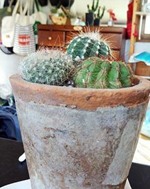 取りあえずサボテンの寄せ植えはデスクに。もう一つはチェストの上に飾ってみた