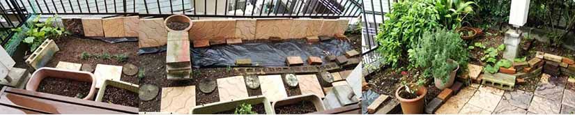 裏庭の花壇は植わっているモノを全部抜いて