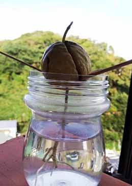 そしてひょろっと根が出ていたアボカドの種も根が伸び芽がヒョコッと出ていました
