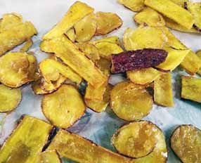 今日はさつまいもがあるからと芋チップスと大学芋風プリンを作った