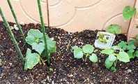 で、新しく接ぎ木の胡瓜の苗を2コ買ってきて植木鉢に植わってます