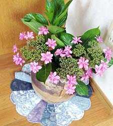玄関の花瓶に挿した紫陽花 この花瓶も割りたくなかったので、「身を以て守った」てことで。