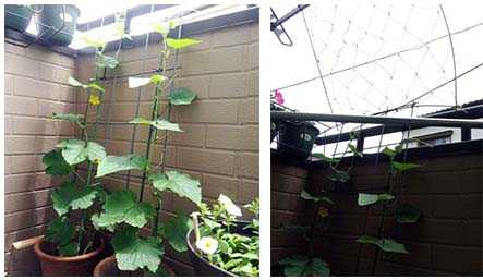 そして東側表のベランダの胡瓜がだいぶいい感じに伸びてきたので