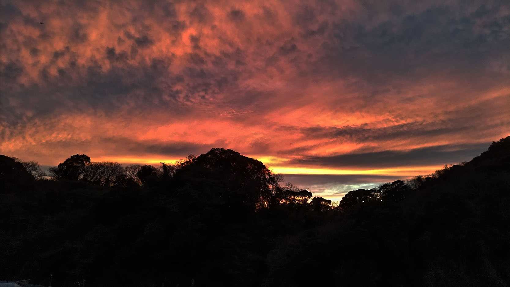 17時50分 出窓が真っ赤に染まっているのに気づき