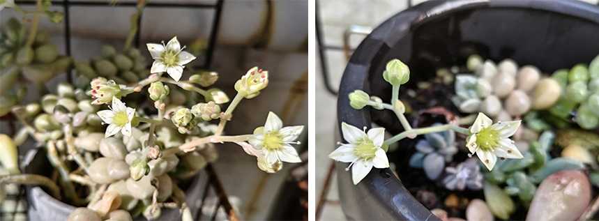 3階ベランダの多肉植物の中で”姫星美人”に花が咲いていました♪