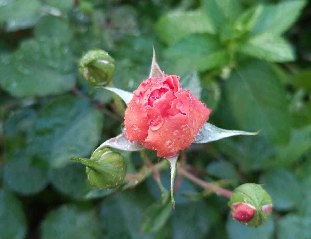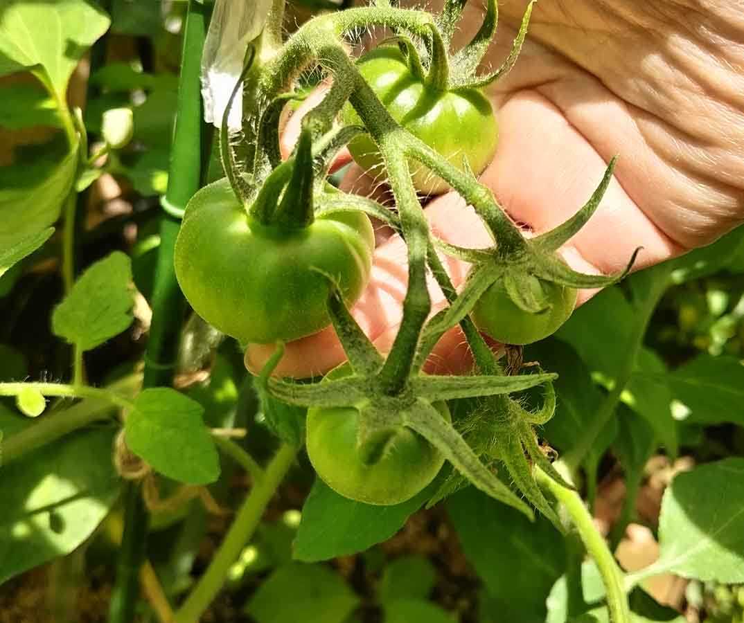 中玉トマト ミニトマトより全然幹が太い やっと可愛いのが出来はじめた
