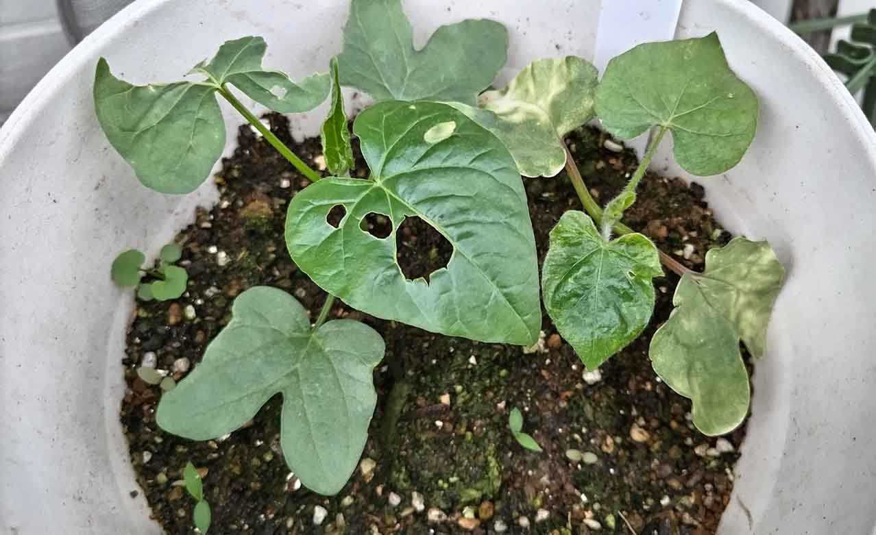 朝顔 ちょっと虫食い?葉っぱが気になるけれど・・・