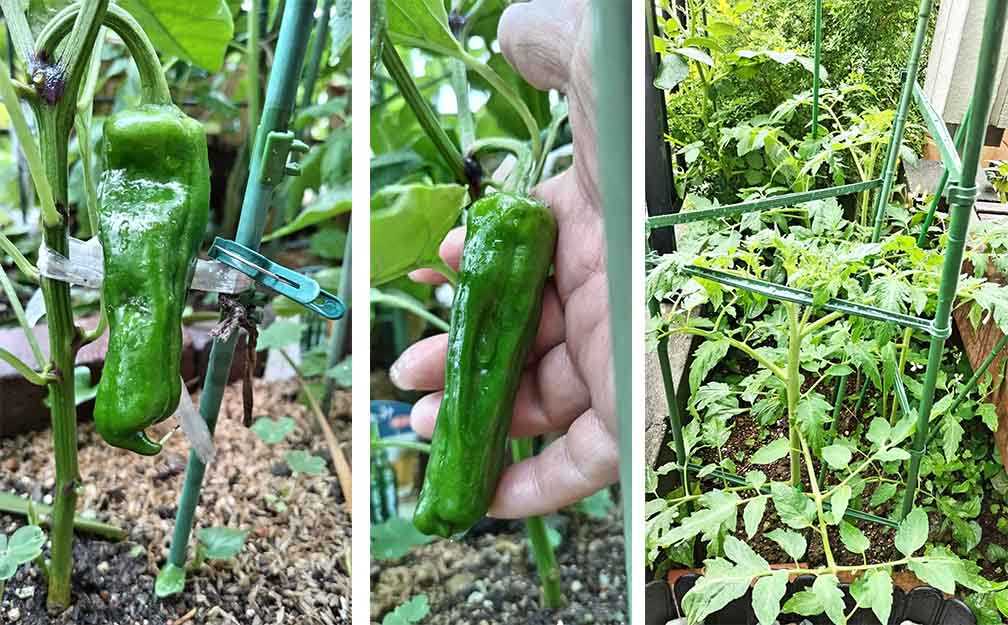 万願寺唐辛子 各苗に1個ずつ   大玉トマトはまだ全然花は咲かない・・・・
