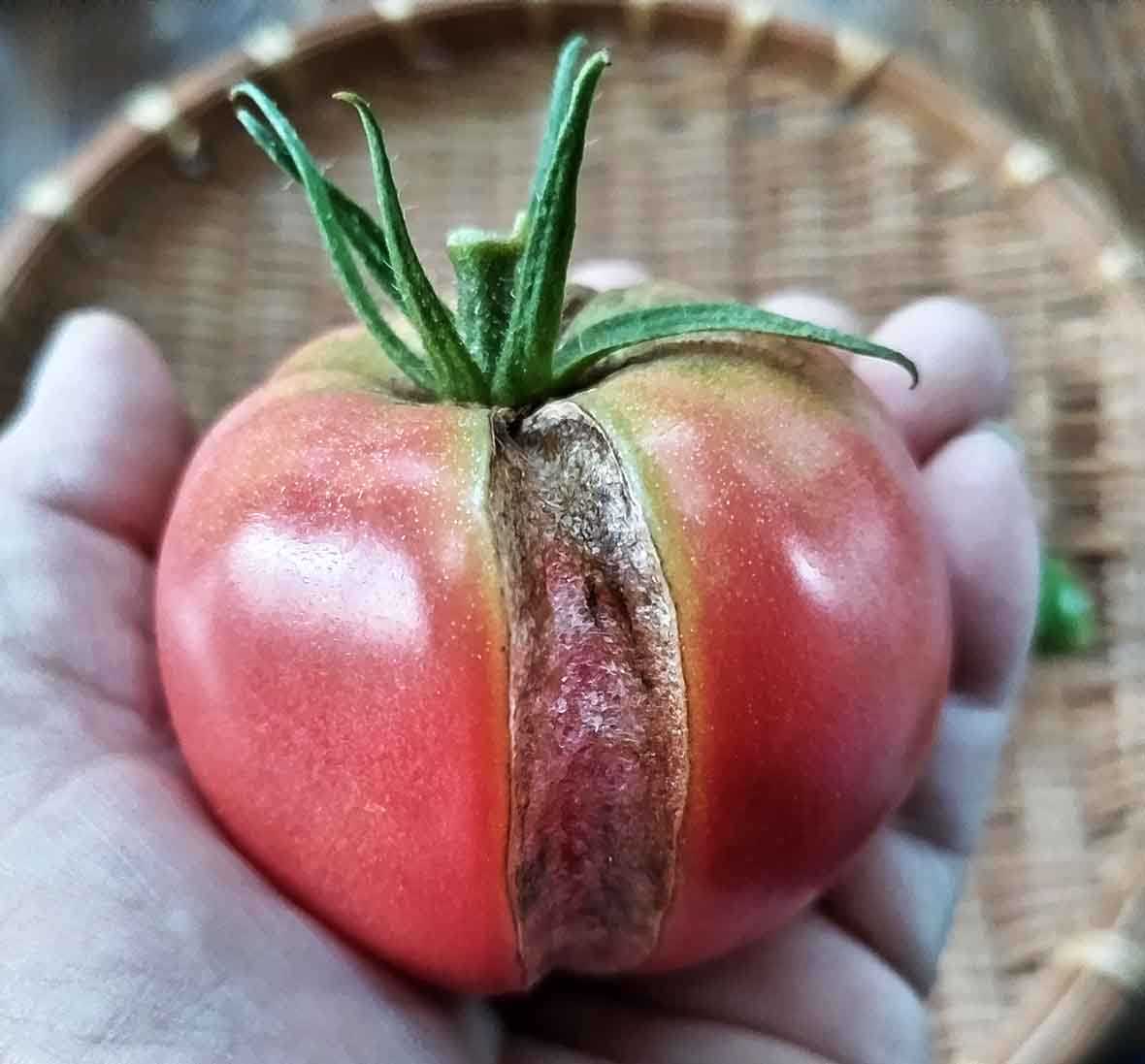 大きさはそんなでもないのに裂果してしまった やっぱりもう育たないのかなあ
