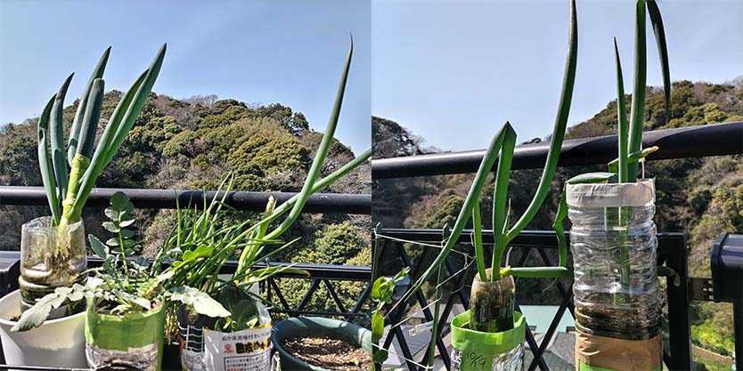 2階のネギ スーパーで買ってきたネギの根っこ部分を植えたもの