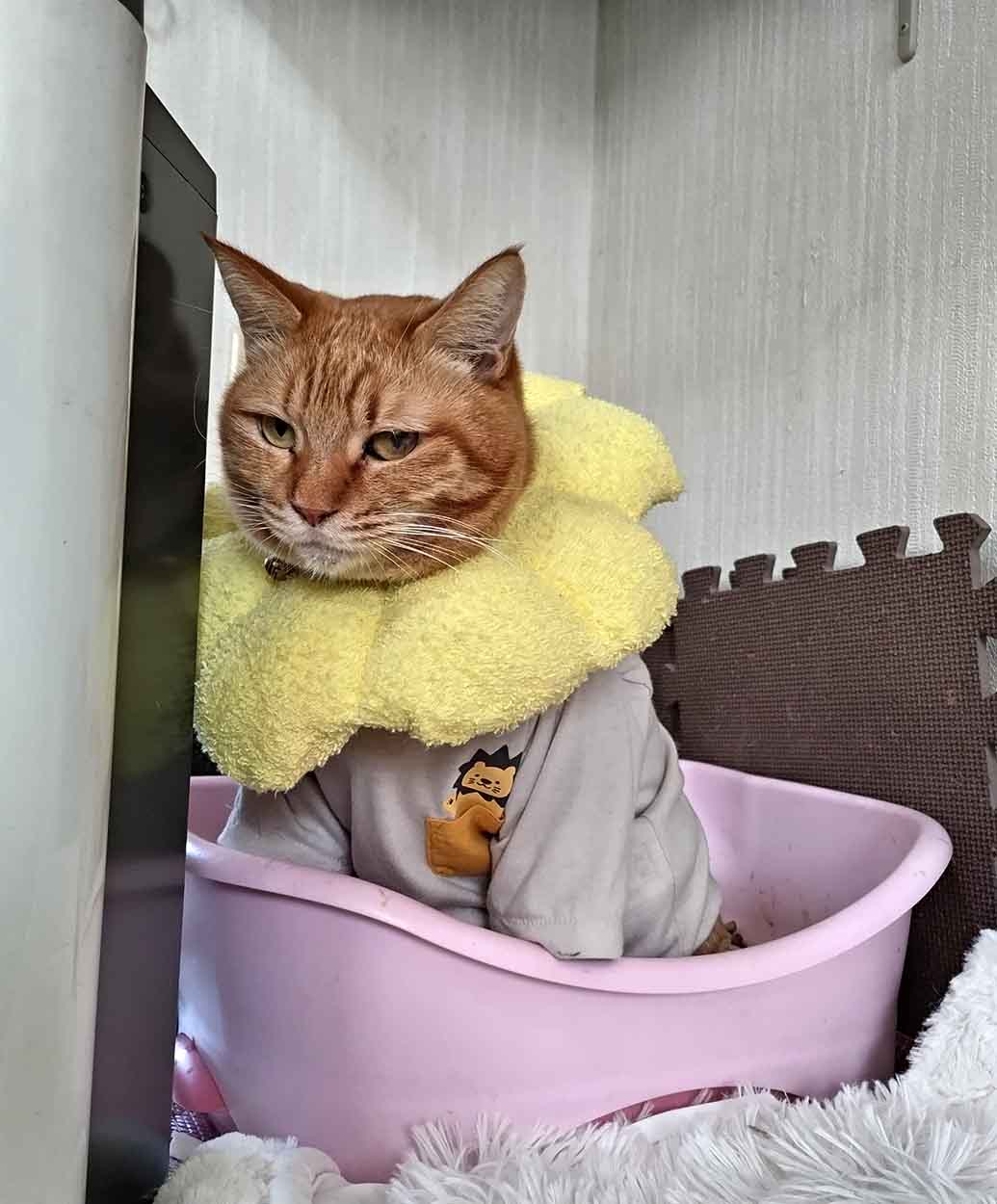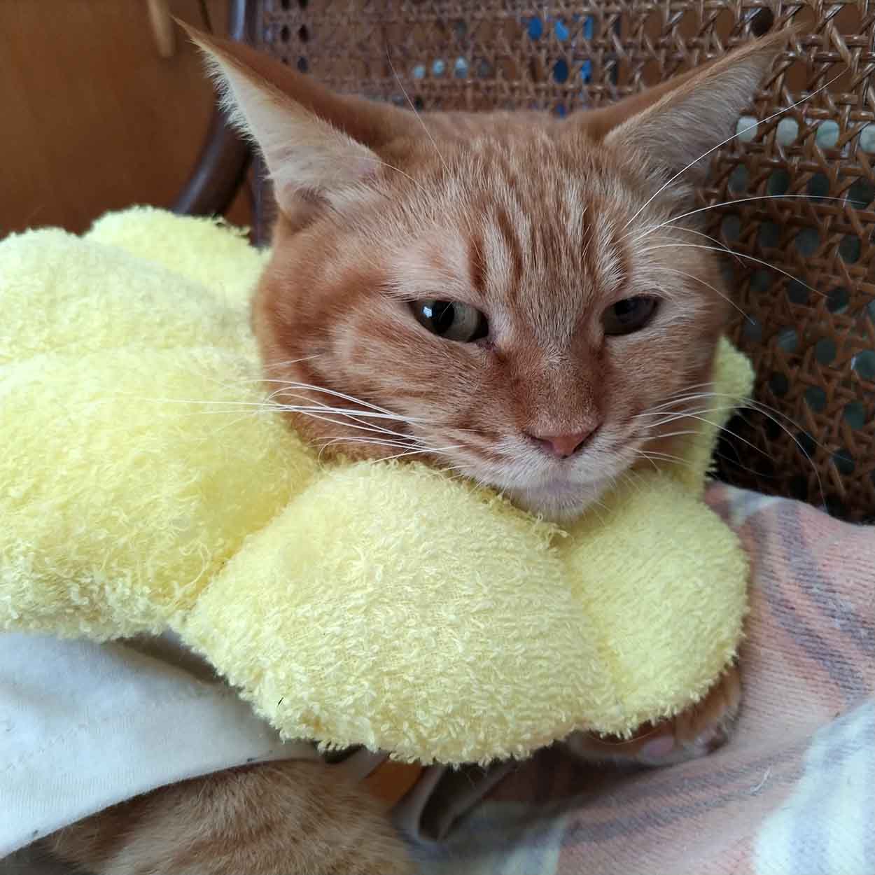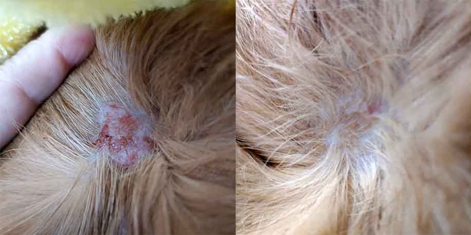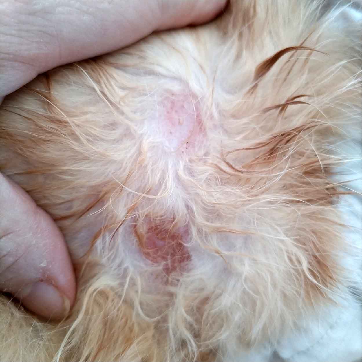 お腹 痂皮を消毒薬でふやかしてコームで綺麗にして軟膏を塗る