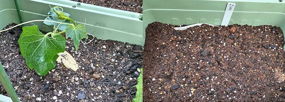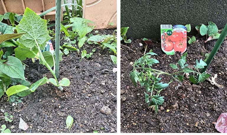 既に胡瓜は2本植えてあるけれど、なかなか伸びてこないのでもう1本接木苗のフリーダム追加320円