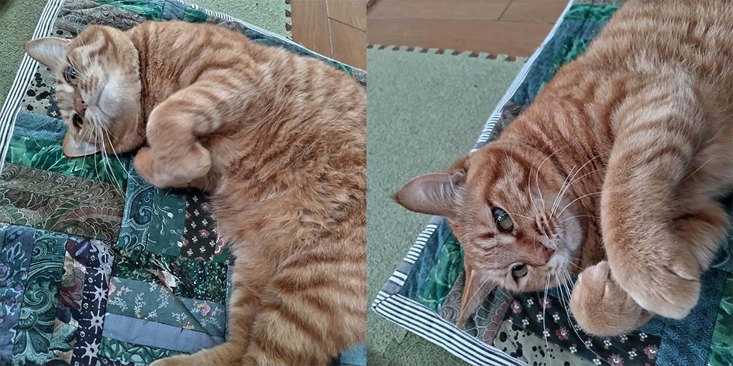 6時50分 チョンチョンと私にアピールするとゴロンとして「撫でて」リクエスト